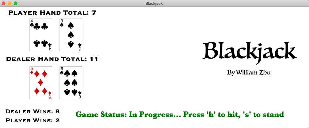 In another project for the Python Programming Course at UChicago, I created a blackjack game. Try it out yourself: