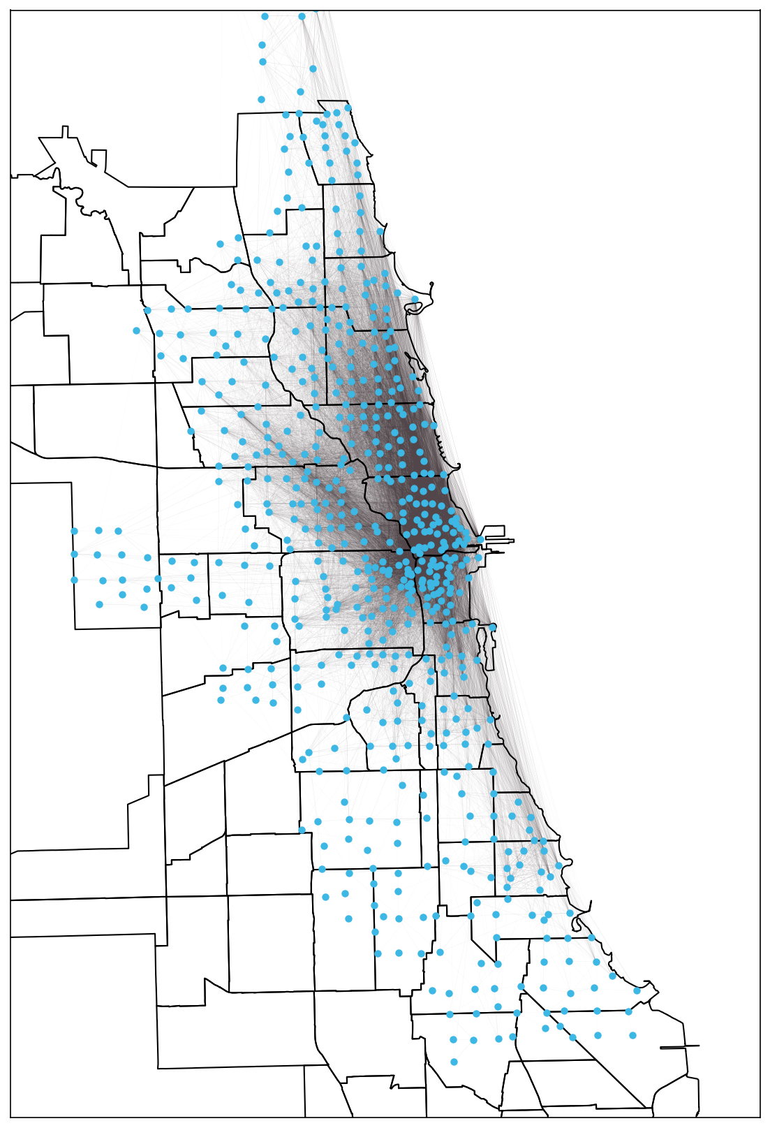 Network graph of Chicago Divvy bike stations and trips (April 2021)